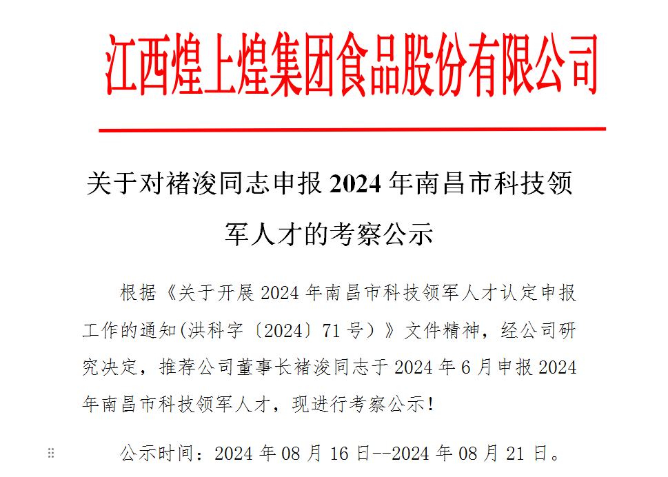 關于對褚浚同志申報2024年南昌市科技領軍人才的考察公示根據(jù)《關于開展2024年南昌市科技領軍人才認定申報工作的通知(洪科字〔2024〕71號)...