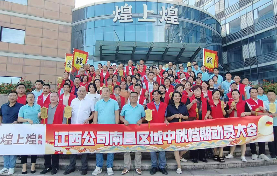 為有效達(dá)成中秋檔期銷(xiāo)售目標(biāo),9月6日,煌上煌江西公司南昌戰(zhàn)區(qū)召開(kāi)決勝中秋檔誓師動(dòng)員會(huì)?;蜕匣歪u鹵事業(yè)部副總監(jiān)兼江西公司總經(jīng)理李軍,江...