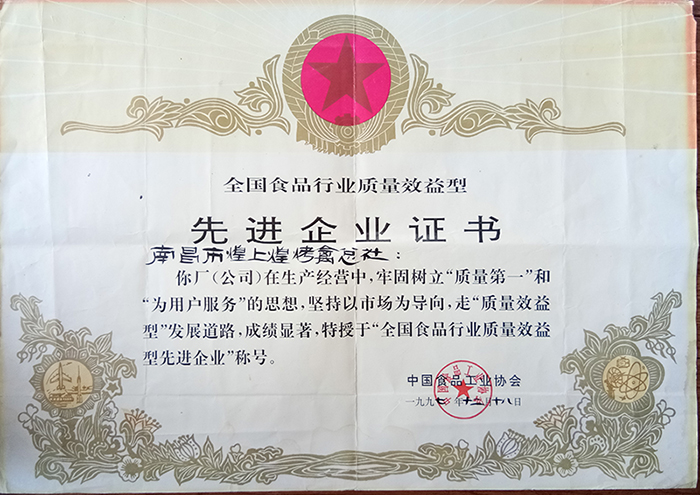 1997年,榮獲“全國食品行業(yè)質(zhì)量效益型先進企業(yè)”稱號