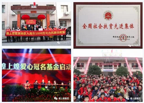 集團積極謀求多元經(jīng)營,在全省范圍內聯(lián)接培育了27個肉鴨養(yǎng)殖專業(yè)合作社;全資打造“江西茶百年油脂有限公司”,規(guī)劃在全省各地建設高產優(yōu)質油茶基地2萬畝;全資打造江西煌盛房地產開發(fā)有限公司、萍鄉(xiāng)武功山溫泉君瀾度假酒店等多個項目;2016年,集團響應“一帶一路”國家發(fā)展戰(zhàn)略,成功與新西蘭新溪島公司合作簽訂麥盧卡蜂蜜項目;2017年,集團產業(yè)鏈逐步向文化產業(yè)延伸,全面做好煌上煌醬鹵文化館、非物質文化博物館、企業(yè)黨群文化館,“三館一體”文化產業(yè)全面起航;近年來,煌上煌成立了集團餐飲事業(yè)板塊,目前形成了江西合味原酒店管理有限公司、江西新煌廚餐飲有限公司、江西煌家徐媽鹵汁拌粉品牌運營管理公司三大品牌,助推江西贛菜品牌三年行動計劃實施。煌上煌致富思源,熱心公益慈善事業(yè),積極承擔社會責任。累計帶動下崗員工1萬余人就業(yè);在全省捐建6所希望學校;帶動農戶3萬余戶,累計增收3億元;2020年新冠疫情發(fā)生后,第一時間向省紅十字會捐款1000萬元用于抗擊疫情,同時總共分四批次向湖北捐贈產品2萬余份,另有口罩、真真老老產品等醫(yī)用物資,總計折合人民幣200多萬元。數(shù)年來為抗洪抗震救災、扶貧修橋修路、資助失學兒童,興辦希望小學等,累計捐款捐物達8000多萬元,被國務院扶貧開發(fā)領導小組評為“全國社會扶貧先進集體”。并于2013年成立了煌上煌愛心基金會,標志著煌上煌向愛心事業(yè)代代相傳進行到底。