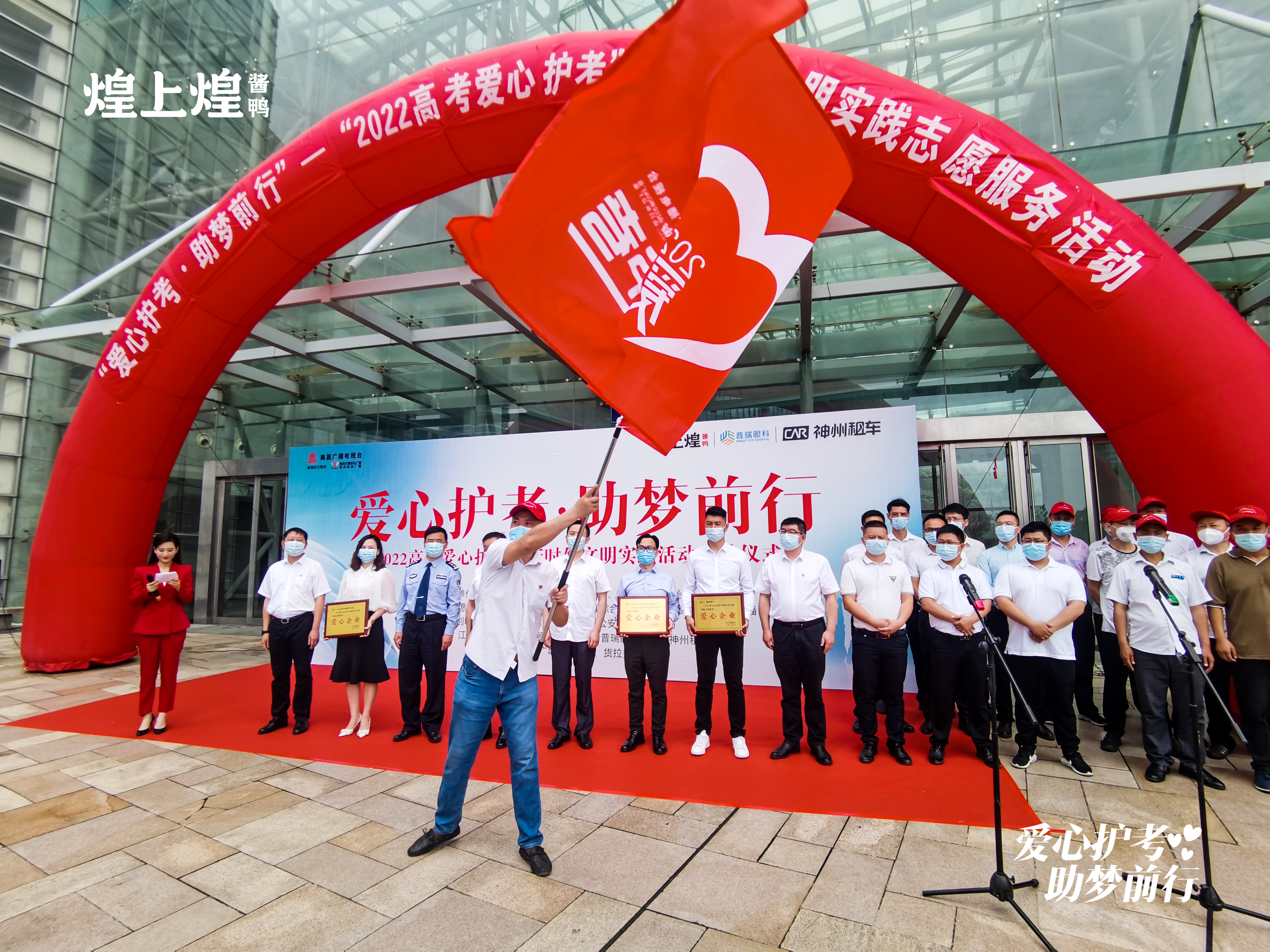 致辭結(jié)束后,市委宣傳部(市文明辦)領(lǐng)導(dǎo)、南昌廣播電視臺(tái)領(lǐng)導(dǎo)向煌上煌集團(tuán)等愛心企業(yè)授予“2022愛心高考護(hù)考新時(shí)代文明實(shí)踐志愿服務(wù)愛心企業(yè)”獎(jiǎng)牌。